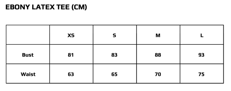 Latex second-skin top with laser cut EBONY detail.
